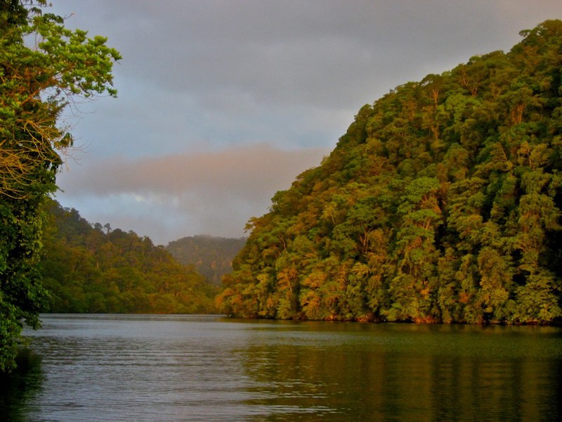 ON THE SHORE OF THE MORE CUTE RIVER OF GUATEMALA, SWEET RIVER IN AN AREA WHERE WE HAVE A PROTECTED AREA FOR THE MANATI.