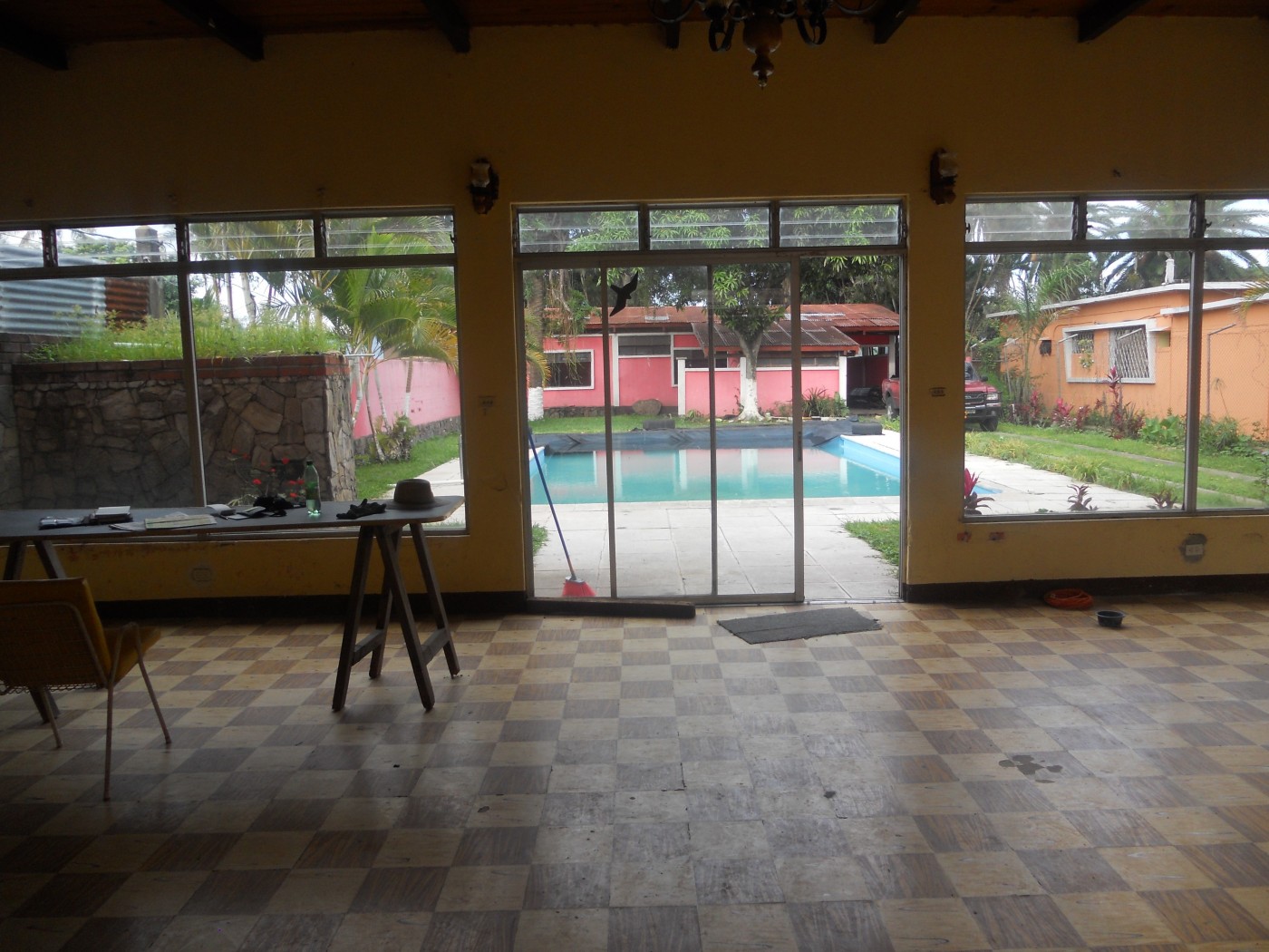 In here this house is called Chalet because is located around the Amatitlan lake property size 12 x 110 meters. with boat entry , two houses , total of five rooms , three rest rooms , three security rooms (need some work and paint ) and one meeting room for about 75 people. Thks for your answer.