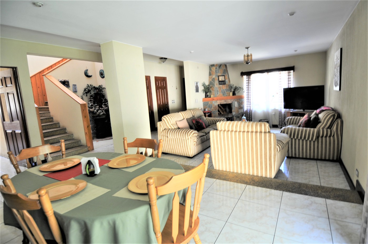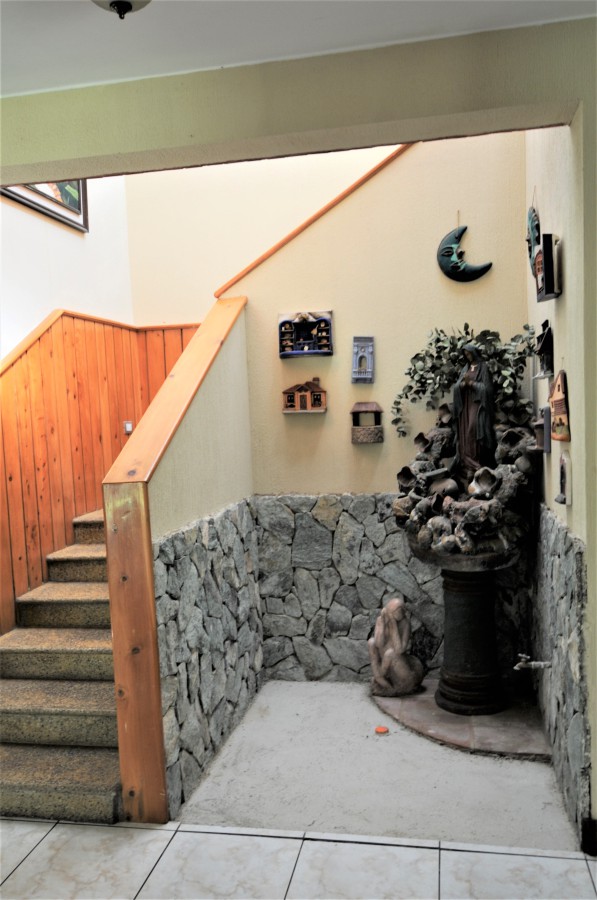 jardín interno, espaciosa sala en desnivel con una hermosa chimenea esquinera, y gran