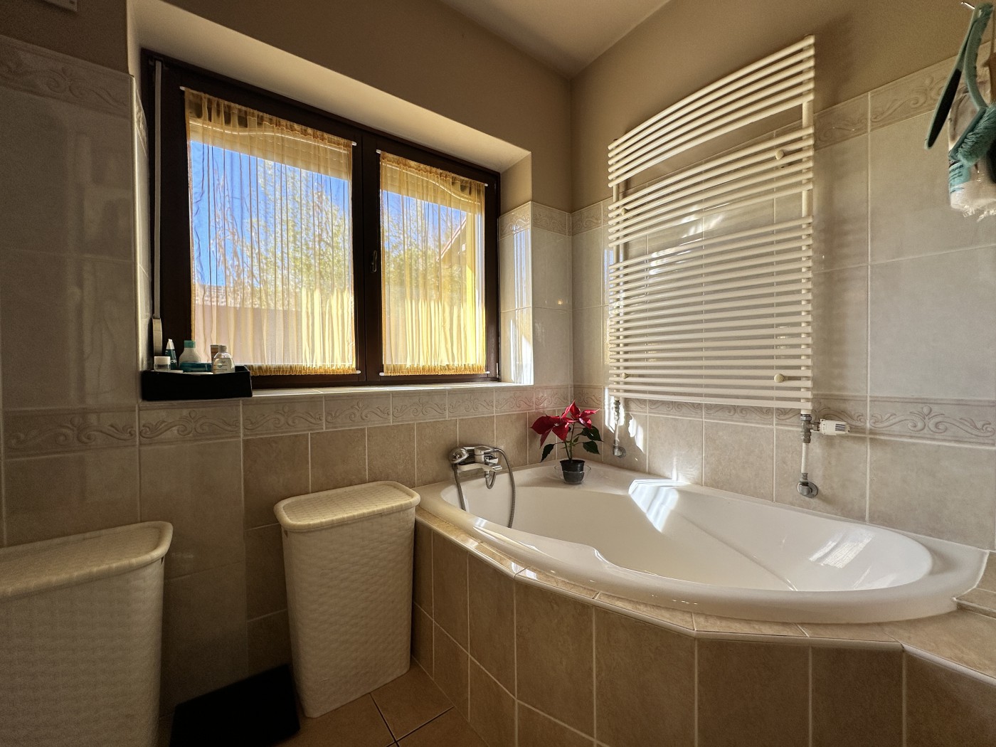 Charming six-bedroom estate on the Eloviz canal in Bekescsaba. Built in 2005 with a B energy rating and south orientation, this 267 m2 residence sits on a 1,510 m2 landscaped, private plot with canal frontage. The property features two separate living units with four entrances, 54 m2 of covered terraces, a garage, and multiple service rooms. High-quality materials and energy-efficient design ensure comfort and low running costs. The garden offers trees for shade, flowers, a barbecue and lounge area, and a designated pool site. Ideal for multi-generational living or conversion into a wellness, education, or business facility. Ready for immediate occupancy and maintained to high standards. Ownership is 100% clear. Price: EUR 411,000 (subject to exchange rate).