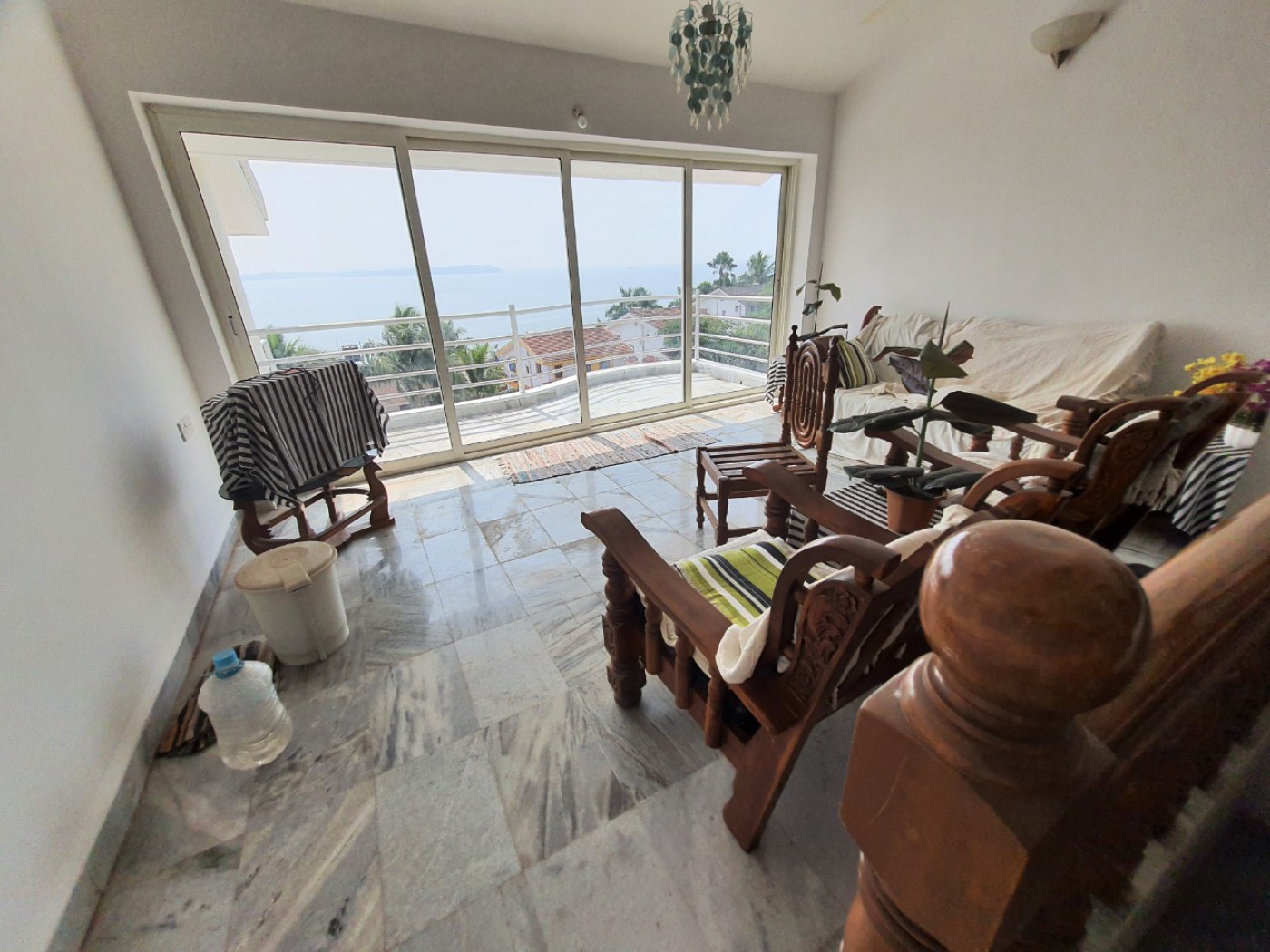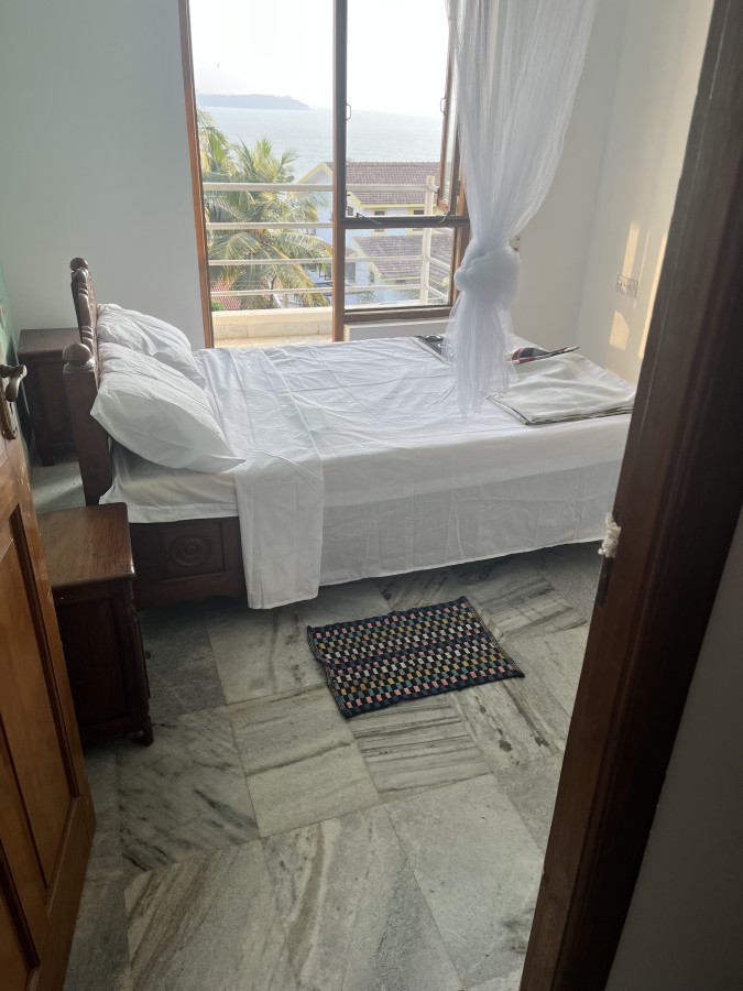 Hilltop House , North Goa near Candolim . For sale is my { fully furnished } villa at Reis magos 2.5km from Candolim . Situated on a hilltop 100ft above sea level, Overlooking the ocean with worldclass stunning unobstructed panoramic sea views . Property is over 3 floors ( 4 levels ) , with 4 bedrooms , 3 bathrooms. 3 balconies . Built in 2001 , it has never been never lived in or rented out . Only used on business trips to India every 3 years . Usually for 1-2 week duration . Freehold , no finance or debt . Has Large communal swimming pool and gardens . 24 hour security , gated community of 43,owners with only 2 permanent living on site . Tranquil and peaceful all year round .Fantastic sea views from across the ocean for miles . Paradise with fresh clean air , a rarity if you from other parts of India like Delhi . I am U.K. based . Contact me direct --(Phone number)-- .