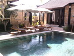 The Villa combines elements of Balinese architecture with modern comfort. The traditional Balinese entrance opens up to a breezy landscaped garden with lush vegetation, a gazebo, a sun deck and a good size swimming pool.