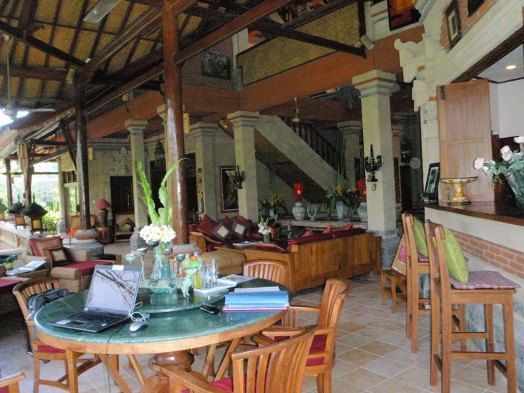 The villa is completely an luxuriously furnished. The large Balinese style entrance door opens to the generous open space living area facing the garden with a waterfall and a `bale` (open pavilion).