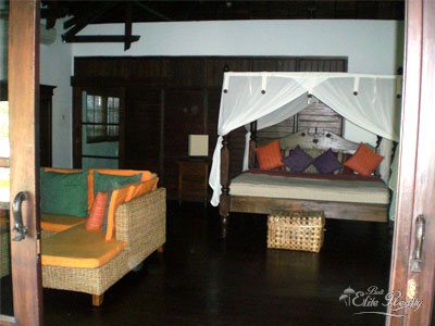 The two story villa is a serene, traditional, open plan style home which combines recycled Teak, and natural wood finishes. The building has a hand crafted recycled Teak parquetry floor which has been cleverly raised for tropical living. It contains the living, dining & kitchen area, along with three en-suite bedroom. Self-contained staff quarters, complete the arrangements.