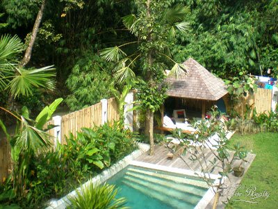 The two storey villa has three bedrooms with en-suite bathrooms, and a open and closed living / dining room. The front yard has a small landscape garden, while the swimming pool, gazebo `bale` and outdoor terrace are located at the back. It is sold semi furnished.