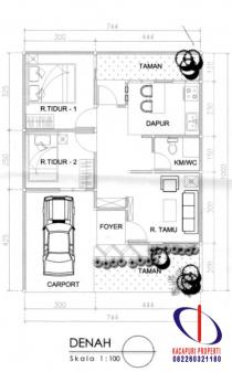 Kamar tidur: 2 Kamar mandi: 1 Garasi: 1 Luas tanah: 75 m2 (10x7,5) Luas bangunan: 46 m2 Berapa lantai? 1