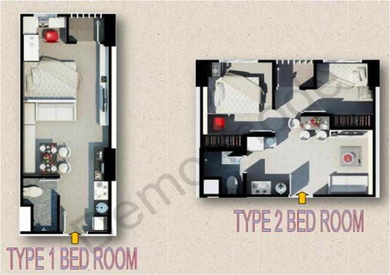 Titanium apartment consists of 2 types, namely: Type 1 Bedroom (29.76 m) Type 2 Bedroom (37.20 m) Aston Condotel consists of two types, namely: Type Studio Superior (29.76 m) Type Executive Suite (37.20 m)