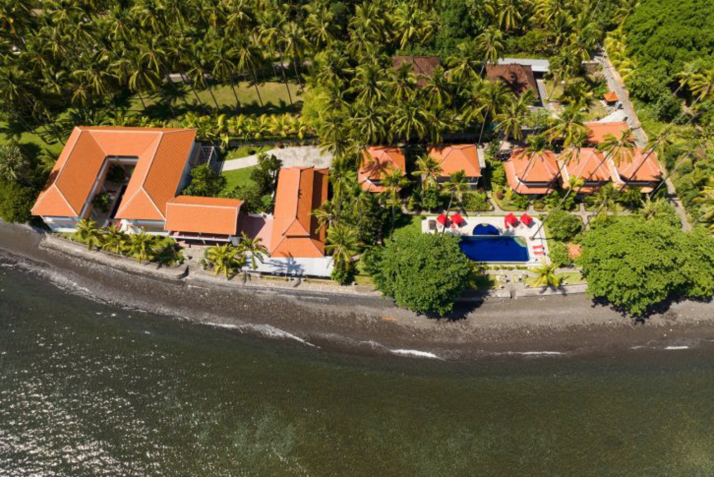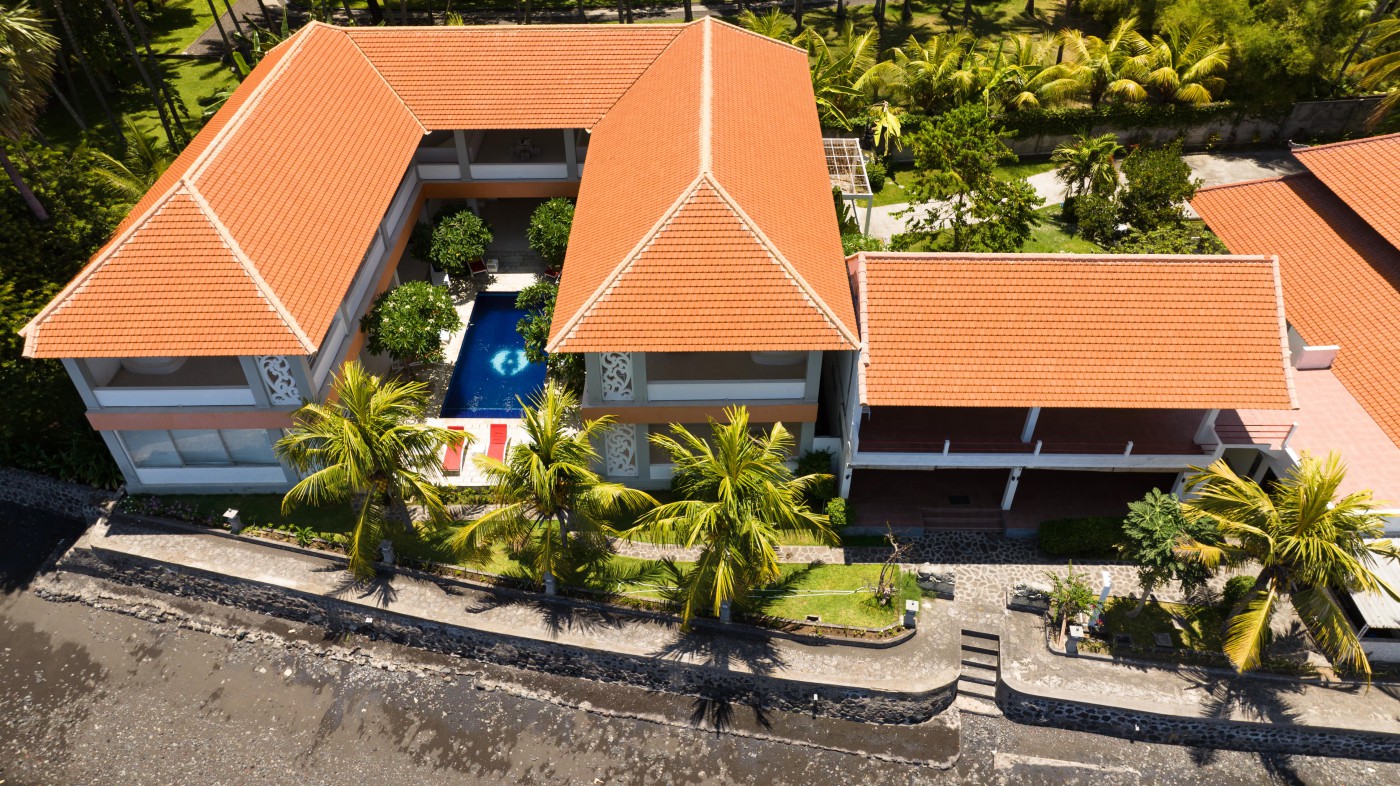 Beachfront resort `Bondalem Beach Club` located on the north coast of Bali, surrounded by coconut and mango plantations, running business offered for sale freehold.