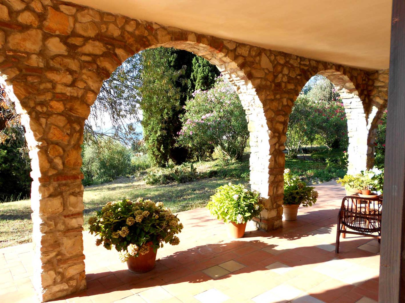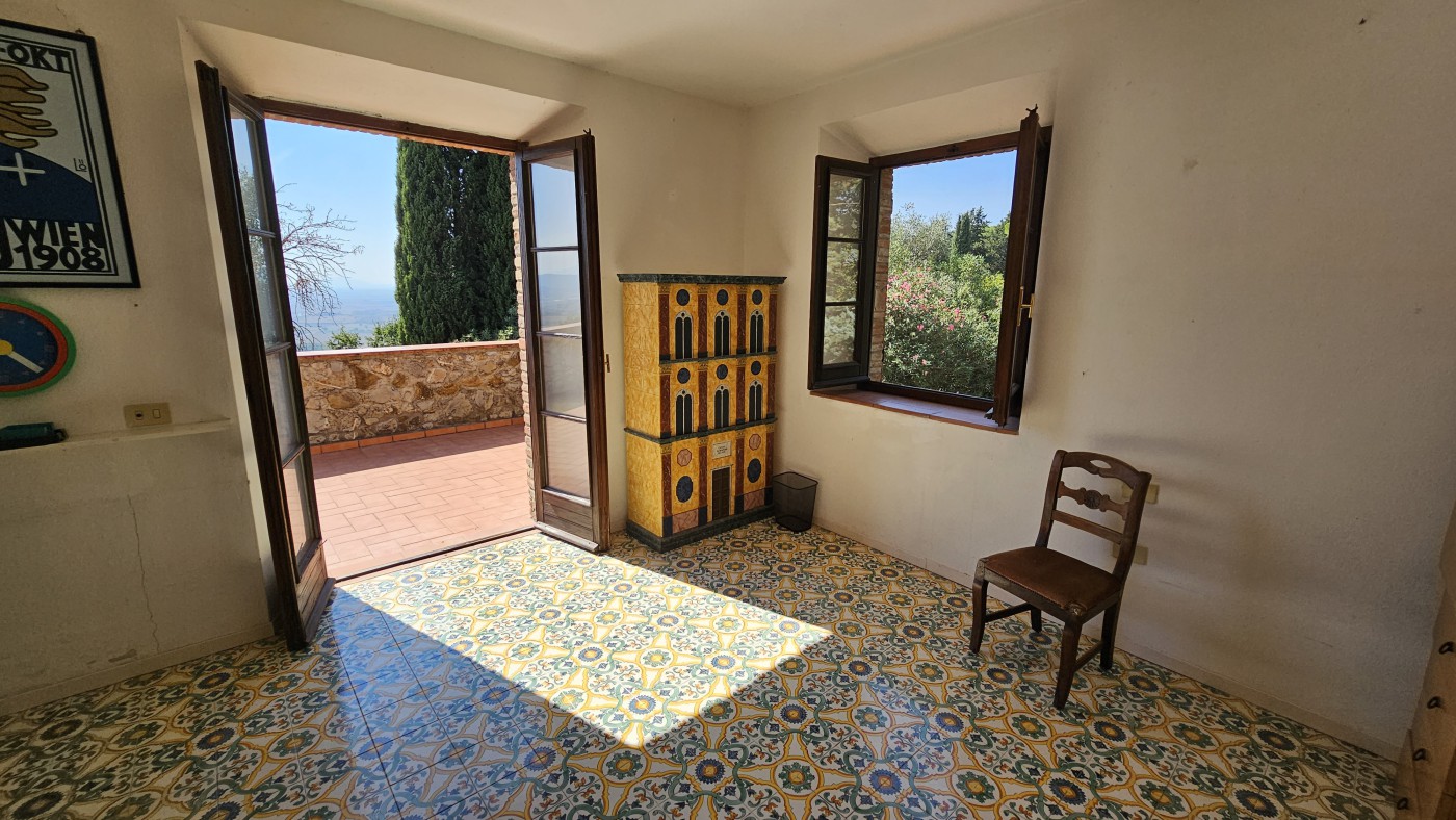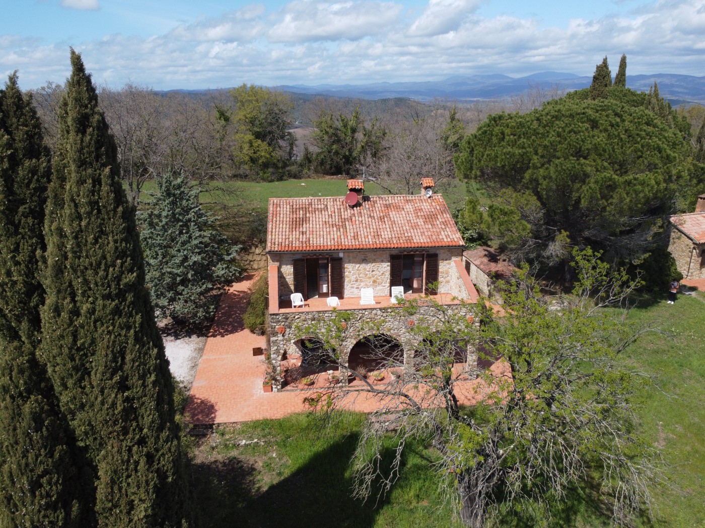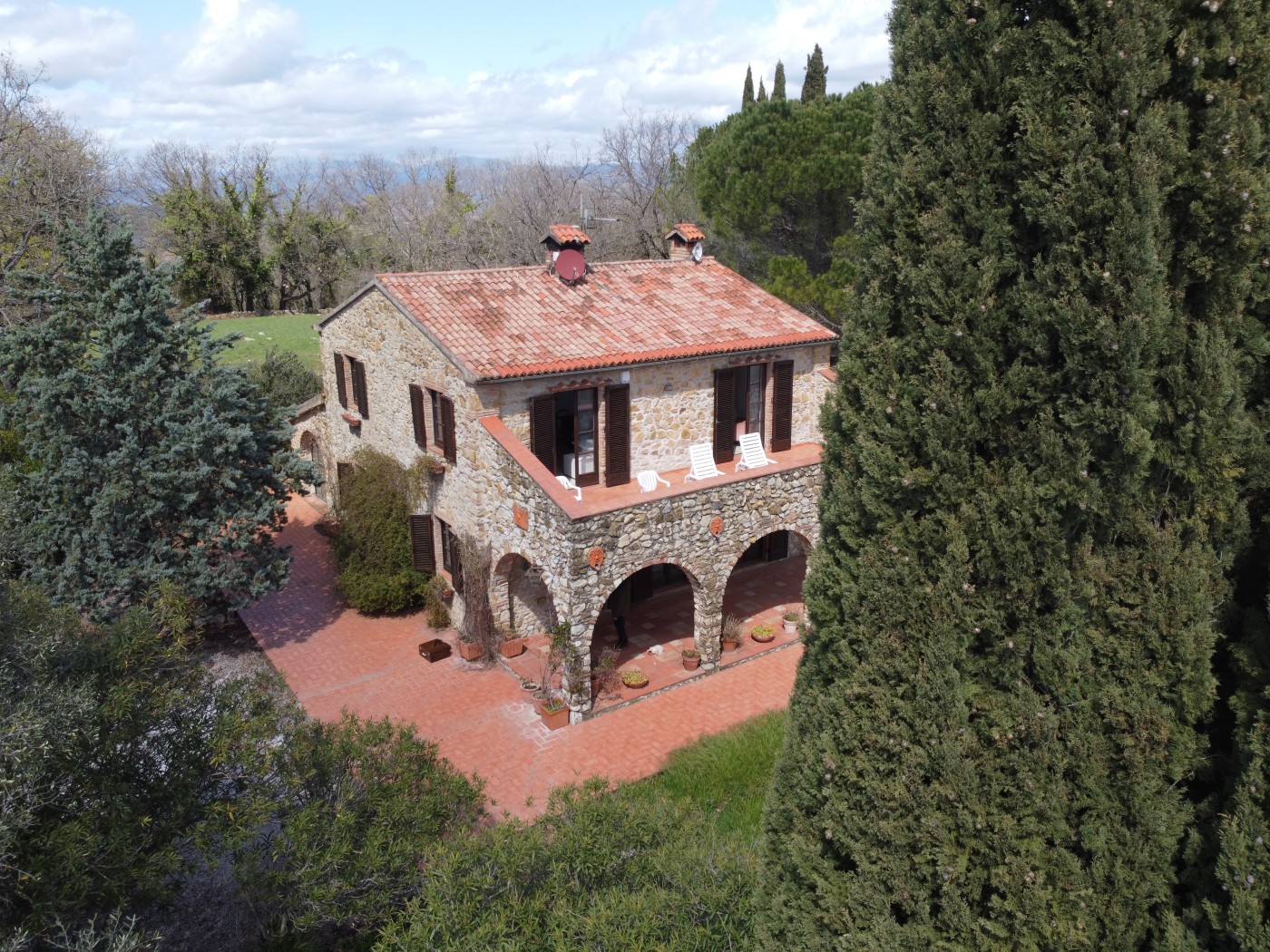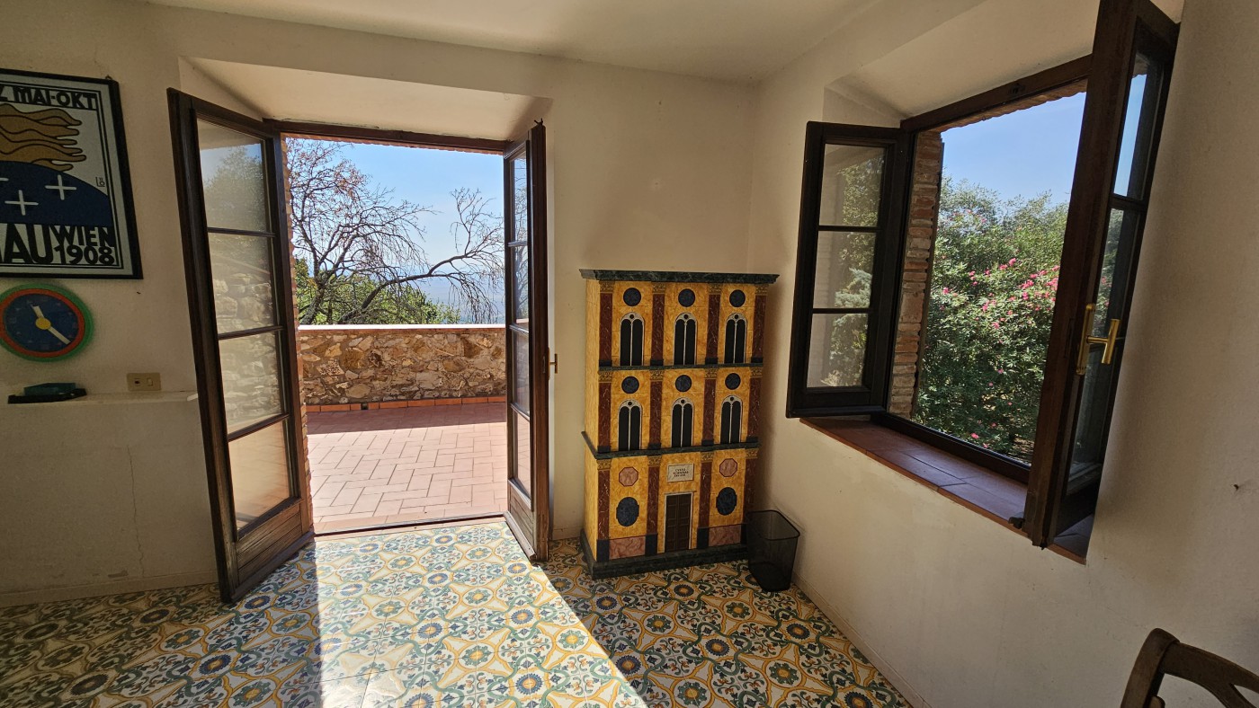 Giuncarico Stone villa with outbuilding and unique view REDUCED BY 10% - Giuncarico, for exclusive sale a Splendid villa built with exposed stones of the place rough-hewn by hand, for a total of about and one outbuilding, also built with the same stone as . The main building is composed as follows, large entrance porch of approx, double living room with fireplace and large masonry stove covered with refractory majolica (Kachelogen type) with hot air also being sent to the upper floor by means of special ducting, eat-in kitchen and a large room with windows, currently used as an art studio. On the first floor, connected by a comfortable internal staircase, there are 3 bedrooms, a large walk-in closet wardrobe, a bathroom (possibility of making another one), a closet and a beautiful terrace of about from which you can enjoy a splendid panorama that goes from the Grosseto plain to the Park of the Maremma and the Argentario promontory. On the second floor, connected by a trapdoor and retractable staircase, We find an attic of about usable exclusively for storage use. All floors of This property, are covered with hand-painted artistic ceramics from Vietri. Particular attention is paid to thermal insulation work, carried out on the perimeter walls through the construction of a double wall with insulating panels and cavity filled with expanded clay. Thanks to this system, And thanks to the airtight windows, the building retains a temperature of up to 10 degrees inside in summer lower on the outside; while on the other hand, heating can be easily carried out, so that the all eco-compatible, with the help of the refractory majolica stove only. The second villa is located a short walk from twenty meters from the aforementioned main building. It is a characteristic cottage entirely made of stone open room, both inside and outside. The interior is made particularly warm and welcoming by the typical gabled roof with support beams and ceiling covered with expanded cork panels and Wood paneling. The building is entirely on the ground floor with an extension of about 90 square meters, In addition to 30 square meters of covered outdoor porch and divided as follows: large living room in a central position with large exposed stone fireplace, two bedrooms, kitchen, dressing room and bathroom. Heating is secured by a typical, large traditional Danish stove made of decorated cast iron. From the kitchen you can reach the porch built along the east side of the building. The land surrounding the villas is approximately, consisting of a large garden all around the buildings and an arboreal heritage that accompanies the land, partly spontaneous, partly due to the owner s intervention, over many decades. Are there are over a hundred majestic oaks, some of which are centuries-old, about forty cypresses, olive trees, pines and a centuries-old almond tree.