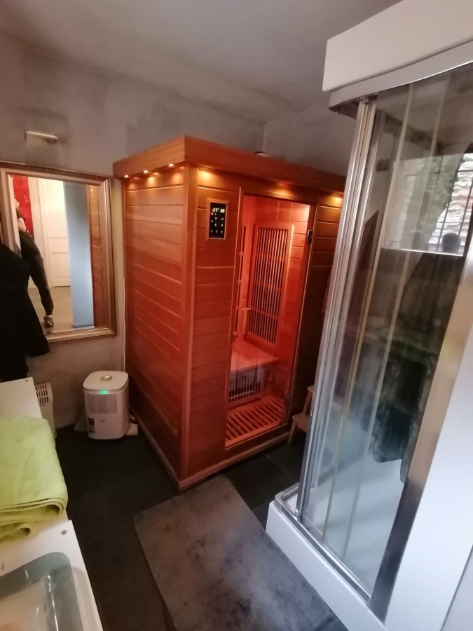 large bathroom with sauna