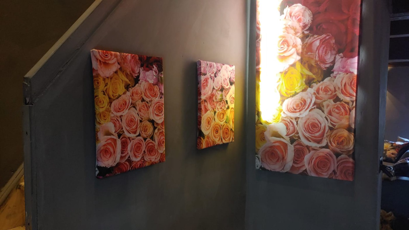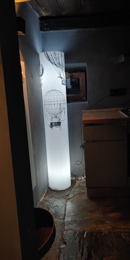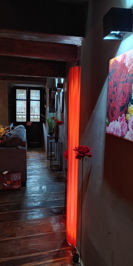 Piano terra, Ingresso con pavimento in pietra di Luserna con quadro retroilluminato “ad intera parete”.