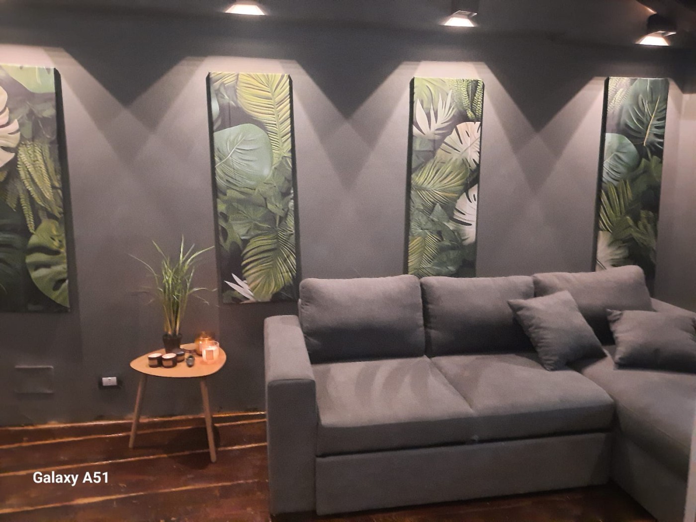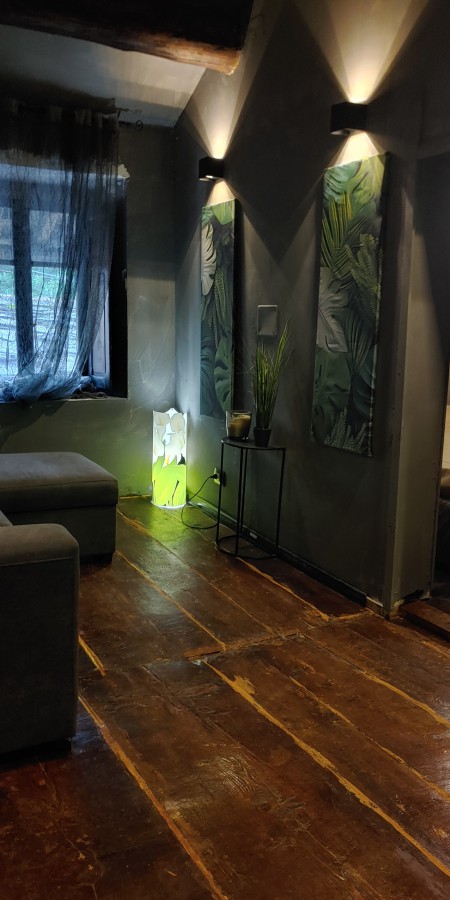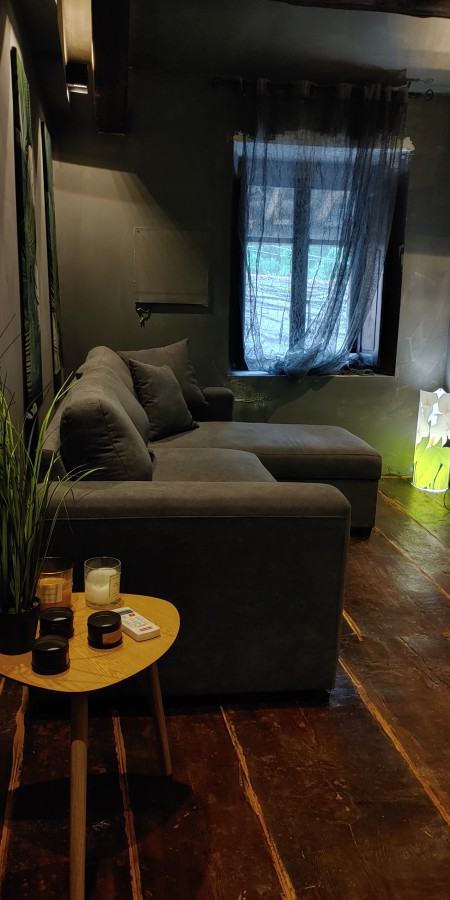 - Relaxation room with a large sofa (convertible to bed) and window overlooking the main street