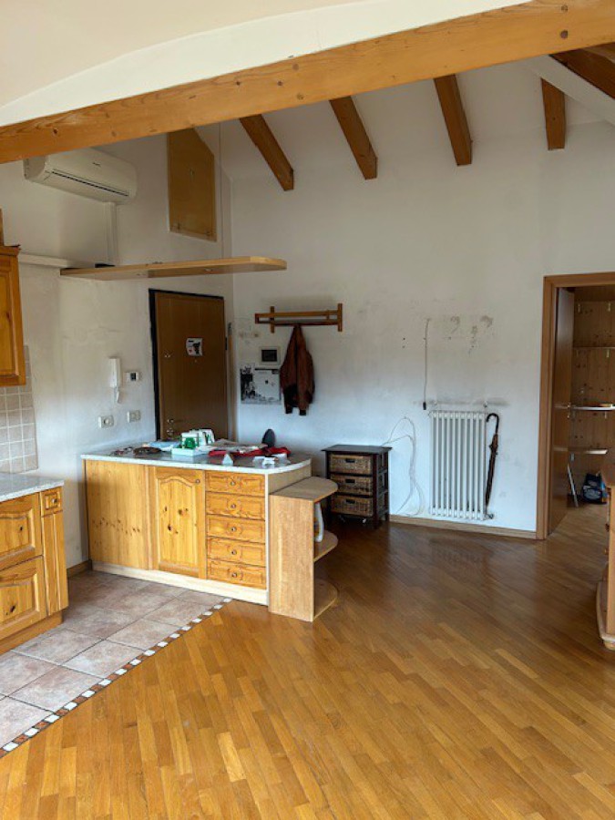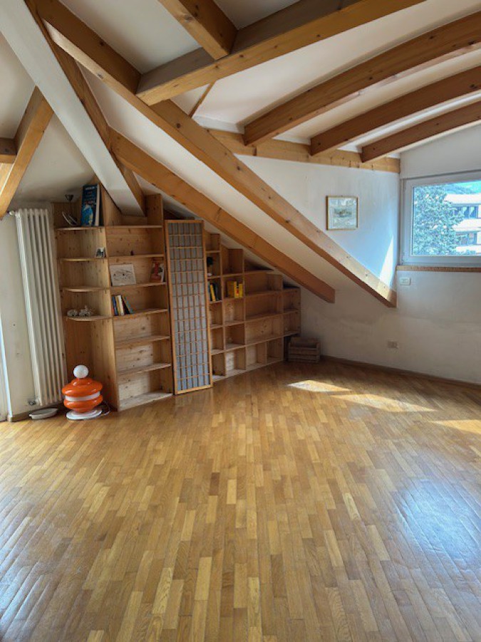 Selling an apartment in a central library currently under construction. Shops, restaurants and bars are easily accessible in the immediate vicinity View of the mountains of the Dolomites (Rosengarden) The attic apartment is located in a small condominium. It has no elevator but a basement. Minor renovations are required.
