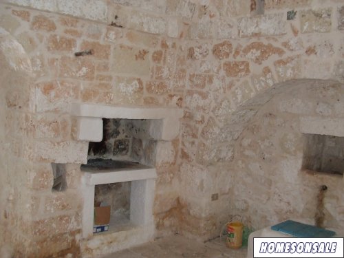 It is an unusual country-house near ostuni on the way to sammichele (5km faraway from Ostuni). It is surrounded by about 8000 square meters of land: almond trees, olive trees, prickly pear, pomegranate tree and something more. The whole house is made by stones; there are 2 water tanks underneath the floor, small bathroom ,1 bedroom and a small kitchen, fireplace. For nature and peacefulness lovers. The electric company is about to connect the house to the main network. I`d like to receive first a mail. 80000 euros Price negotiable. 60000 euros PRICE CUT (jan 13th 2010)