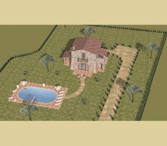 (CAS0052A) Independent farmhouse nestled in the gentle countryside between Umbria and Tuscany, in the municipality of Castiglione del Lago, overlooking the lake of Chiusi with a magnificent view of the enchanting Montepulciano and Chianciano Terme of Cetona position: the basement of a large garage, cellar and store room use, ground floor living room with fireplace and kitchenette, bathroom, porch, porch and covered patio, first floor double bedroom furnished with exclusive terrace overlooking the lake, a bedroom with direct access to the covered patio and a bathroom. The total area is square meters. 90, as well as covered porches and balconies of approx. 18 square meters and a veranda. 10. The underground rooms are square. 60. The building will be located at the center of a land surface of approx. 1,350 plete the property is a swimming pool placed sideways to the cottage with stunning views over the lake. State of repair. The cottage will be fully reconstructed by recovering both the shape of the existing building exterior elevations will be in local sandstone mixed with original salvaged bricks, all plastered with historic mortar. The first floor of the porch, covered, in columns of stone will be turned and hammered in a Tuscan style. The roofing will be in roman tiles and roof tiles and brick chimneys of recovery in style with the house. The staircase and the thresholds will be in stone. The interior floors and roof beams and rafters will be of wood impregnated with light walnut-colored finish and water-sandblasted tiles. Will be placed in the living room fireplace in style with the building. The electrical system will be made completely concealed and visible parts will be with ceramic insulators and external drawstring typical of equipment in the old farmhouses. The heating system will be powered by LPG boiler with radiators. The pavement on the porch, the lodges and the porch will be brick paved outdoor hollow flat format. The interior floors and walls of the bathrooms are provided for porcelain of sizes and types suited to the style of house, but today you can still choose different material according to your internal and external fixtures, some of which arc, will all be in a traditional style wooden house, particularly windows and glass doors will be equipped with thermal glass 4 +9 +4.