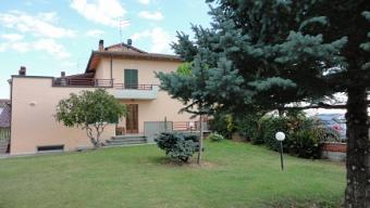(VIL0013A) Near Arezzo in a small Tuscan village between Arezzo and Cortona, the property consists of a semi-independent (free on three sides) with two units position: basement tavern with wood stove and wine cellar with a vaulted ceiling with exposed brick walls, hallway and closet under the stairs, ground floor entrance hall, large living room with fireplace and kitchen with direct access into the courtyard, dining room, hallway, two bedrooms and bathroom with shower, first floor living room with kitchenette, two bedrooms and bathroom;large attic and terrace of approx. 60. Heating system. Total Area: square meters. 300. Three properties within the garage (a garage of approx. 30 square meters and a tool shed. 15 which form a single block). On the property there is a buildable area for further sqm. 100 for a total of approx. 300 with various outbuildings. The property is fenced and has a fleet of approx. 3600 with tall trees (pines, cypresses and pines) and fruit (plums, apricots, pears, cherries and walnuts).