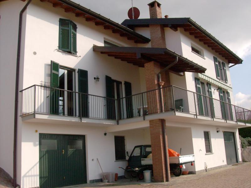 Very sunny house, quiet location, spectacular views; large lounge with gas fire (chimney ready for wood-burning stove), large fully-fitted kitchen/diner, west-facing balcony, 3 bedrooms, fitted wardrobes, 3 bathrooms, 2 garages, 2 large cellars, laundry room, total area 290m2, new gas condensing boiler, double glazing throughout, tiled floors. Great investment, suitable for retirement, small B&B, buy to rent. 380 m2 garden. Easy access to motorway, 1½ hours to Alps. Close to Lake Maggiore. Reduced to sell!