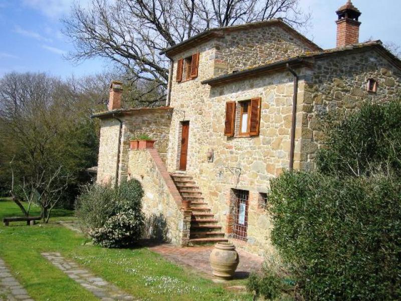 The property is very exclusive and comprises 8,000 square meters of fully fenced garden around the building and served as the plant perimeter irrigation through Bayonet sockets. The access is via gate and pedestrian gate with videophone a long avenue of cypress trees and Mediterranean plants takes us to a covered pergola for the accommodation of 4 cars. A driveway and a pedestrian path with some steps to manage quotas lead us on the front of the building. The building is a particular Country Tuscan farmhouse with its original stones and restored in the most original forms to better integrate. Internally renovated with original materials and flooring for ceilings that are made of wood and old bricks in terracotta with the recovery of niches, louvers and subscales highlight its typicality. On the ground floor as well as the secondary entrance that can be done by external stairs the main entrance is protected with the basement, a living room that connects to a second room equipped with a fireplace, a bathroom, stairs leading to the first floor, kitchen and lunch with external access to both the oven and the pergola for dining out. The first floor hallway night with access to the second bathroom, bedroom, master bedroom and hallway to the third bedroom on the second floor. L `property is fully furnished and complete with all the features exterior and interior equipped with all active users. L `heating system is gas donut and cast iron radiators with broken valve area between the ground floor and first floor, the` system monitor is placed on both the ground and first floor. `The water supply is provided from the water to the municipal building and the outside from the artesian well 50 meters deep, which guarantees quietly functions perfectly kept garden is managed with Toro lawn tractor and brush cutter for the other parts. Externally the property includes a garage masonry of about 32 square meters, which could perform the function of small outbuilding. A second access through an old farm road provides all the various features.