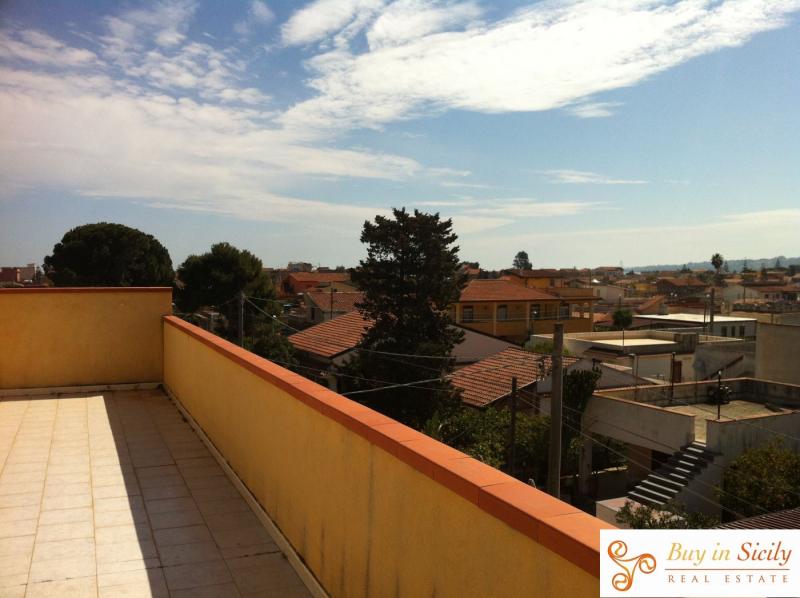 SIRACUSA, AGNONE: Buy in Sicily Real Estate offers for sale an apartment with attic room. The apartment is situated on the second and last floor of a villa in Agnone marina, it has been renovated with excellent finishing and the roof with beams on the whole surface. There is an open-space entrance where all day-zone develops and it is lighted by the spacious window and by the doors that goes to the terrace of the apartment. The sleeping area is comprising of a big bedroom and two small bedrooms. In the apartment there is one large bathroom in the night-zone and one bathroom for guests, that may be used as laundry in the day- zone. Everything is developed on the territory of 190 sqm plus 30 sqm of the terrace. Apartment is at 300 mt from the sea and enjoys a perfect scenery of volcano Etna.