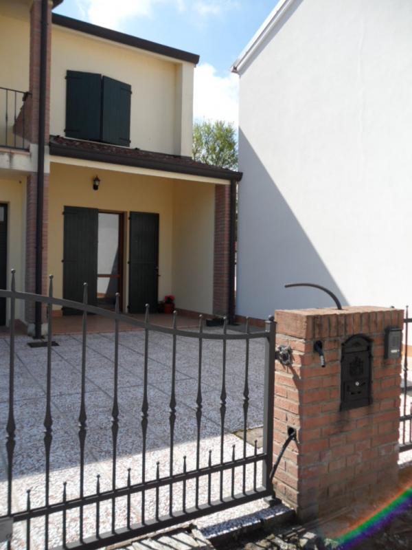Newly built semidetached houses with panoramic view of the countryside in the Po Valley - these cosy houses offer an open plan living room and an adjoining kitchen with dining area separated by elegant wooden door. On the ground floor there is also a bathroom with shower, garages are attached to the houses and there are little porches opening onto back gardens. On the frist floor of both houses there are three large bedrooms with balconies, a bathroom with tub and window and a utility room. Easy access to the under roof. Ideally located for those who love quiet green places, not far from the Renaissance city of Ferrara, an hour drive from Bologna, the Apennines, the seaside and the Euganean Hills. Shops and restaurants only a short walk away. Good quality tiling and double- glazed windows with double opening. Real bargain price! Total living space 135sqm + about 150sqm lot.