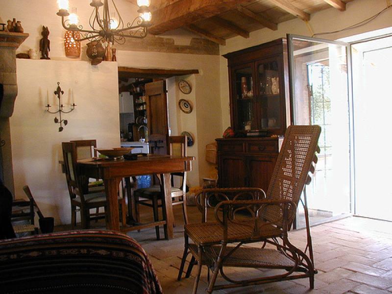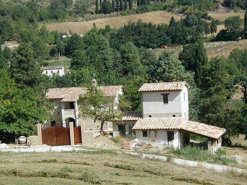 The property, in the town of Montone, extends along the valley of the river Carpina, which forms one side of the property`s border. Ancient house recently restored, it is situated on a hilly area with about an acre of land, including two arable fields and a small wood. It is at 5 km. from the small city of Montone, and close to important and beautiful medieval cities such as Umbertide, Gubbio, Assisi and Urbino. It consists of two separate buildings: the house which is typical of the place of residence (200 square meters) and a dryer stacked as a house (100 sqm). The house is on two floors with stone walls and ceiling with wooden beams of chestnut. On the ground floor two apartments with bathroom and a small kitchen, on the first floor an apartment with three bedrooms, bathroom, kitchen and living room. The floor has the typical terracotta tiles, also the fireplace is superb, in general the architectural details have retained the original structure of the farm house typical of past times rural buildings.