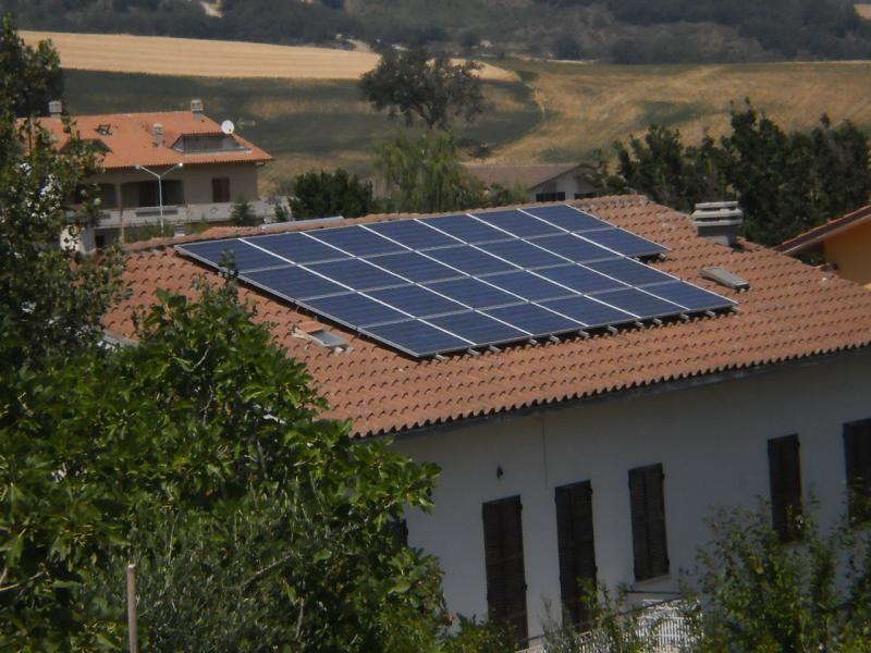 Energy/environmental aspects: Fotovoltaic panels with 6 kw power have been installed to provide free electricity generating a yearly income of about € 3.000,00. A further solar panel plus a condensation gas boiler provide hot water throughout the year, a digged in water tank collects the rain from the roof and two wood burning stoves and four pellet ones (all brand new) heat the whole house, although the pre-existing diesel run radiators can still be used, if needed, or reconverted for pellet use (replacing the existing main diesel boiler). Satellite TV in two floors.