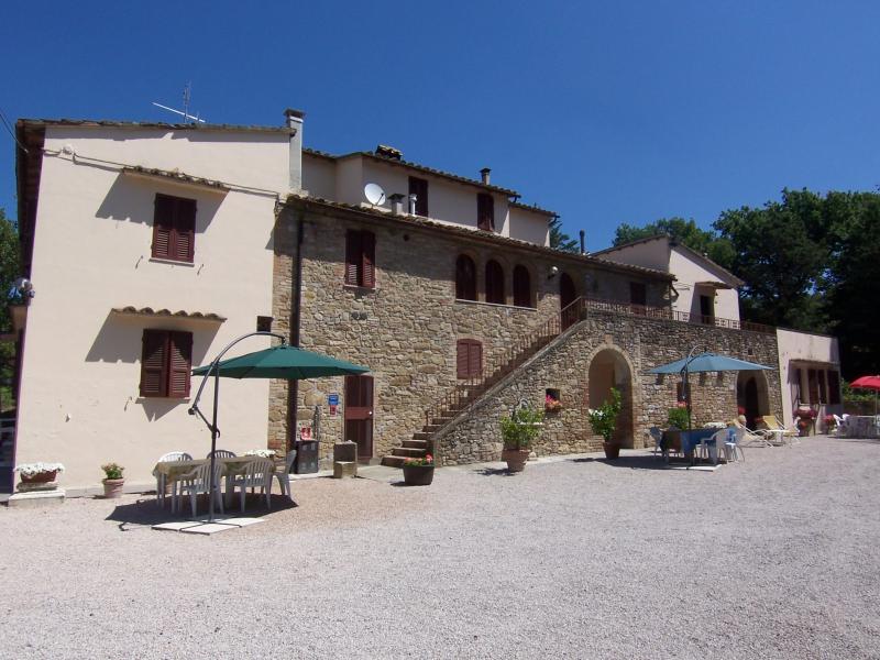 The Farm house `I Perugini` dates back to 1800, it is located at the tip of Monte Tezio National divided in 12 apartments for a total of 1000 square meteres. This house is located at just 8Km from Perugia. Surrounded by pines, ancient acorn trees, and depending on the season feilds of corn, wheat, and sunflowers.