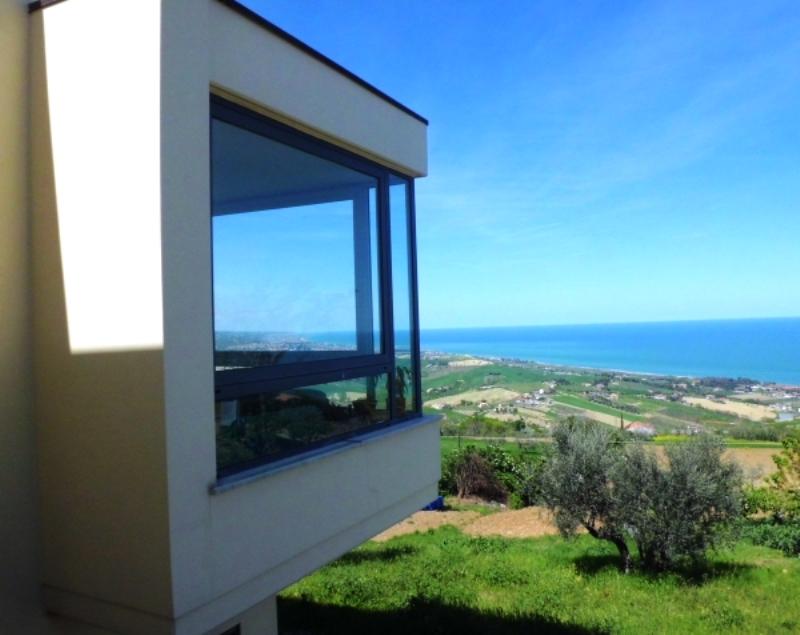 Beautiful exclusive executive villa situated in the very centre of a characteristic town at 8 minutes from the riviera of Roseto degli Abruzzi. The villa of approximately 400 sqm comprises three levels with the most breathtaking views of the sea and Monti della Laga mountains. Lower level comprises large taverna with large fireplce, open plan kitchen, bathroom, laundry room, garage for 6 cars. From taverna direct access to garden of approximately 800 sqm with olive trees. Ground floor large living area with fire place, dining room, large habitable kitchen, bathroom. It has a further 100 sqm to create a further apartment with own individual entrance. Upstairs, study, bathroom, three bedrooms, fourth bedroom with en suite bathroom. Very large terrace of approximately 80 sqm. This property is fully enclosed, offering underfloor heating and with all high technology finishes.