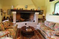 -at the first floor there is a bedroom with its own private bathroom with a shower stall, another Tv room, a spacious living room with dining area and a chimney, French windows opening to the garden and two other twin bedrooms, one of them provided with a small balcony, besides from the family bathroom with a shower stall and a bathtub.