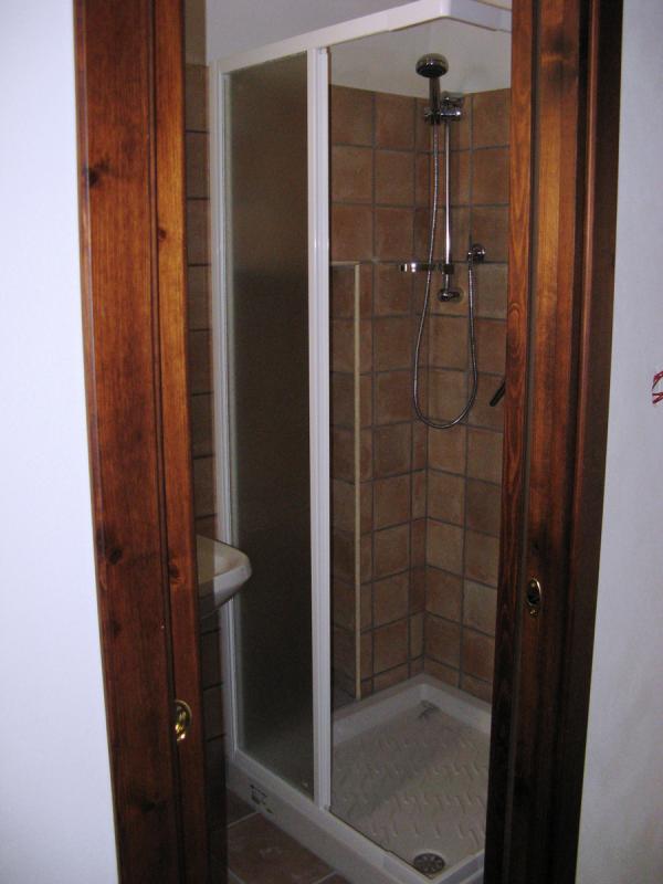 gives access to the bathroom with shower and