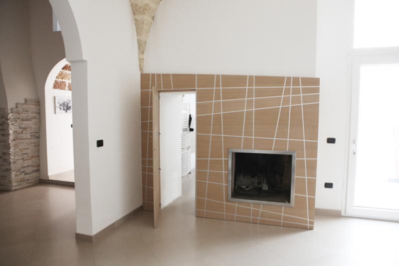 Detached house, very elegant, of 160 sqm on two floors located on the outskirts of the historic center of casarano. The house has a floor area of 125 sqm and further 35sqm of the outer surface. The ground floor consists of entrance in the kitchen area,large living area with relaxing areas, a tv corner, study area complete with bathroom with retractable door,fireplace and loggia exit. The first floor is composed of two bedrooms with staggered levels exit on the terraces, large bathroom complete with shower, laundry area.