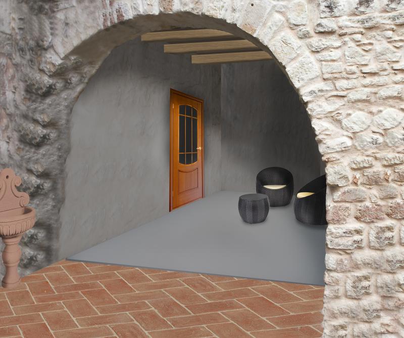 Situated on the ground floor, the entrance is from a small pedestrian only medieval street. The entrance has a lovely archway. Internally the apartment will have living room with kitchen corner, to the left there will be a bathroom while to the right the double bedroom with fitted wardrobes and a arched glass door to access the outside. living roomwith kitchen corner, to the left there will be a bathroom while to the right the double bedroom with fitted wardrobesand a arched glass door to access the outside.