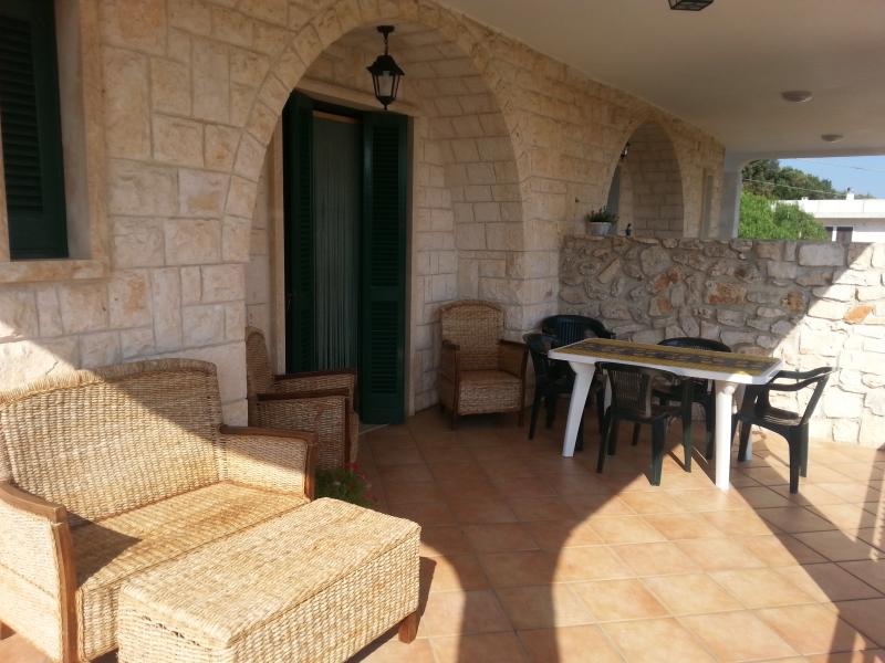 small house on the top of the hill, ten minutes from the Adriatic sea, very nice property: two bedrooms, living room; panoramic terrace 25 sqm.; 300 sqm of garden; surrounded and private space for 4 cars; characteristic oven and barbecue in the garden.