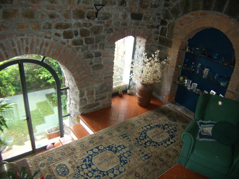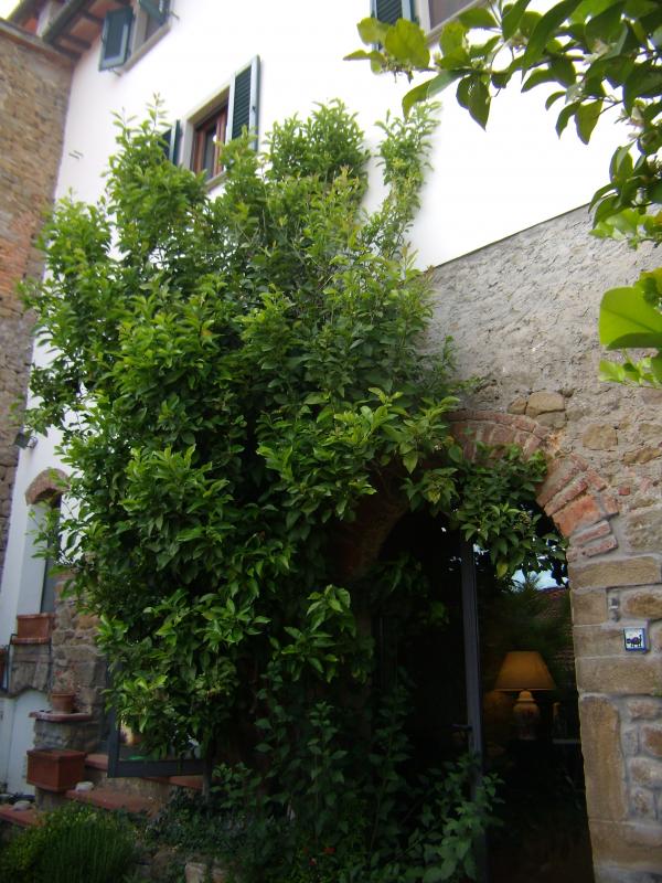 The sleeping area is all fine wood floors, while the remaining parts are made with `cotto`. Two bedrooms have air conditioning and there are two beautiful wood ancient fireplace in the main floor. Most of the ceilings are made of a net of small and large wood beams and tiles in terra cotto typical of Tuscany villa. The house has a tiny intimate garden, with three old big lemon trees and other flowers/plants.