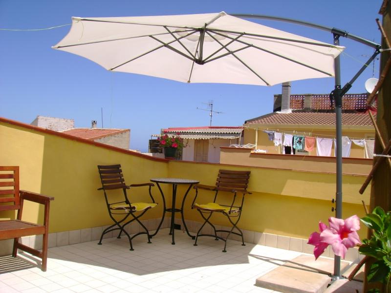 Beautifull Sea View independent house in Sennori**. About 70m2 totally restored: Ground floor: living with kitchenette. In the basement: Tavern + WC. 1st floor: 2 bedrooms, bathroom, and terrace. On the top floor: another Terrace with SEA VIEW. Great view over the area.