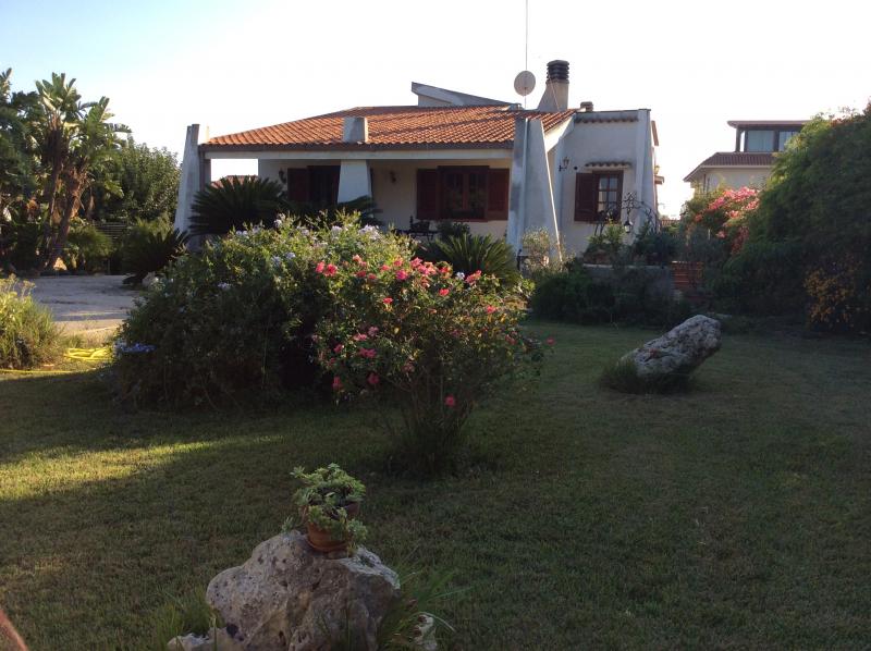 Villa in a Residential area overlooking the old city the so called `Island of Ortigia` ( ) surrounded by the sea and also mountains. Land given over to fruit of all kinds in the back with also a brick oven wonderfully cooking and having olive trees at the entrance of the property beside a large lawn space.