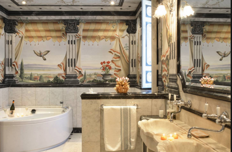compare to the beautifully painted image of its walls. The rooms are airy, with high ceilings, many with
