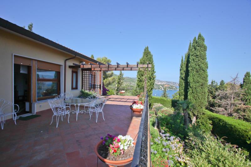 magnificent view of the Argentario Bay and Orbetello, a bedroom with bathroom, a large equipped