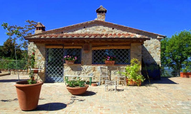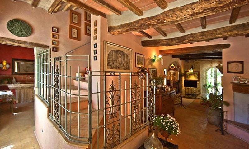 This dream country house has been rebuilt with every detail in place, alarm system, stereo system in every room, and vacuum cleaner connection in every room and gate bell with a video camera. Throughout the land, there are different fountains dating to Roman times, and the views from every cardinal point are outstanding and open, the garden area has electrical plugs and water hook-ups every 50 meters, and the whole property is central to is 11.5 hectares, olive grove, and fruit orchard. The property has the possibility of a pool being built and several spots have been identified for it.