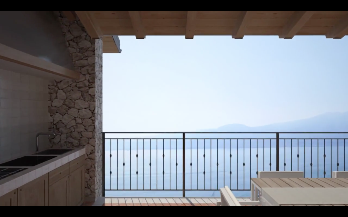 The apartment is fitted with under floor heating and cooling with centralized control; alarm, anti- infringing, low radiation glass windows, external kitchen/ BBQ (on the balcony and in addition to the internal kitchen), illuminated and heated outdoor hydromassage