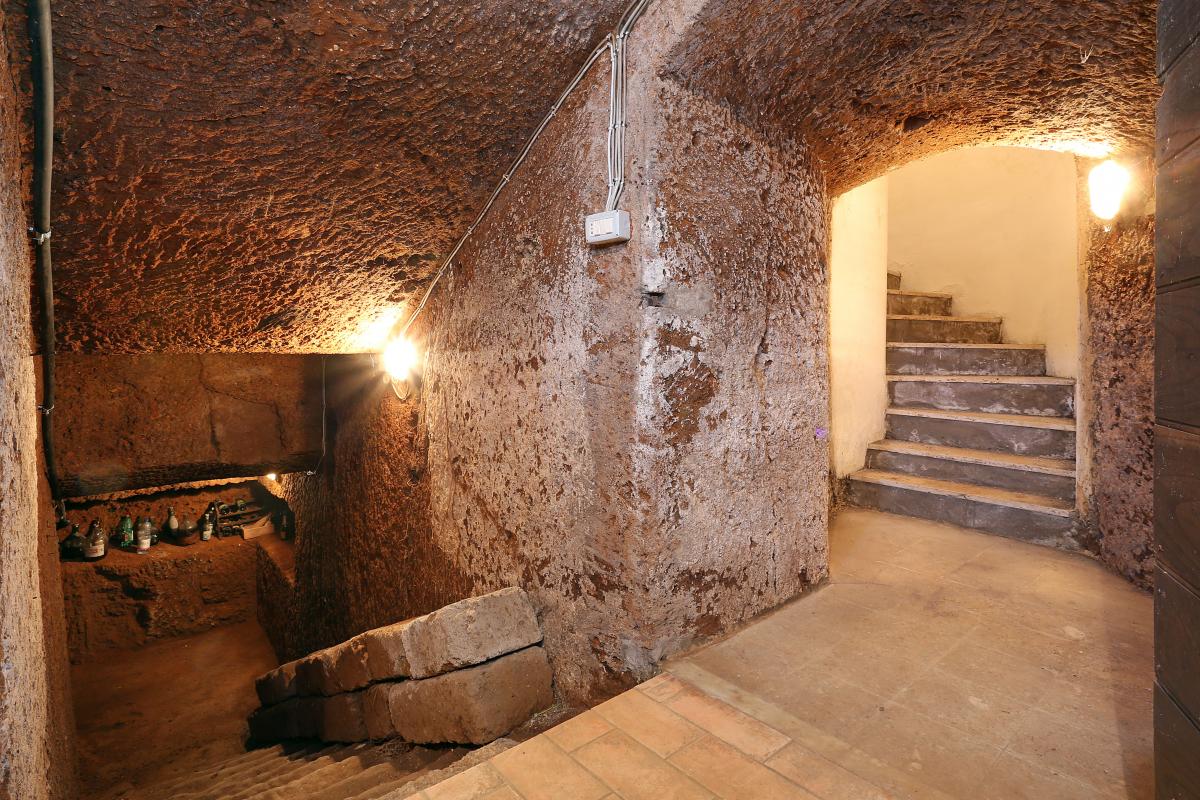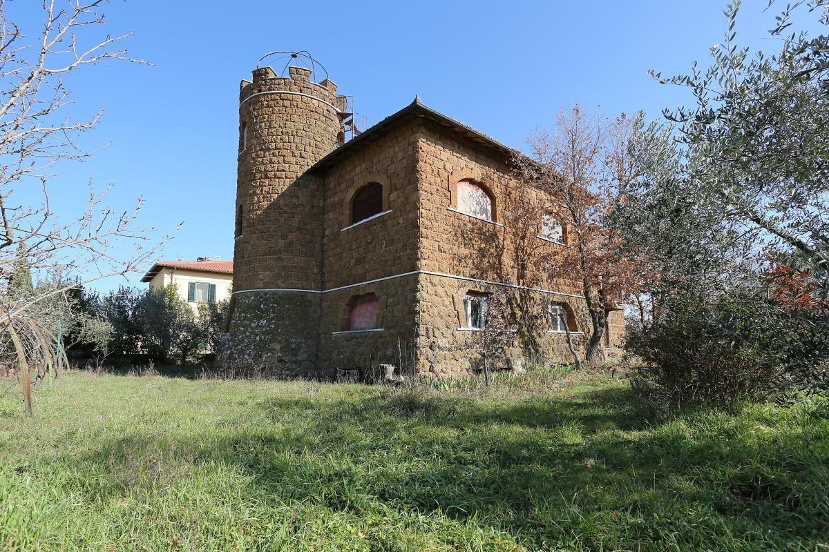 Periode building (1942) 315 sqm, a delicious and unique home for architecture (Castle with tower) and structure (ashlared tuff), recently restored (2000), 4 bedrooms, a living room with monumental fireplace, kitchen, 4 bathrooms, 2 terraces, a large `tinello` into the tuff and a vintage wine cellar dug into the tuff. The charatteristic tower contains an important spiral staircase and a gracious round bedroom.