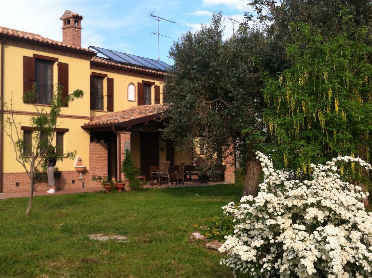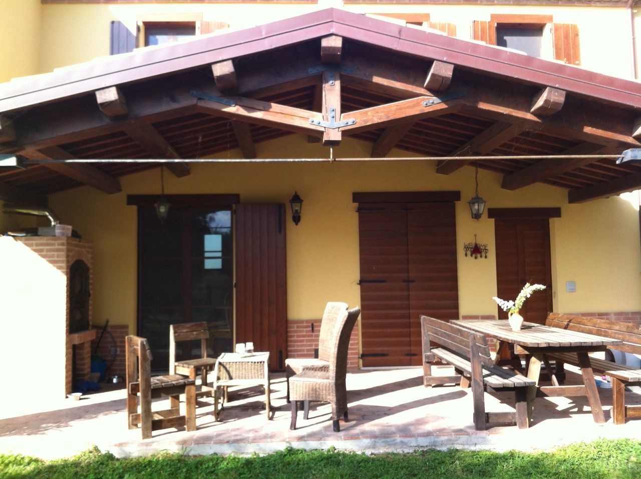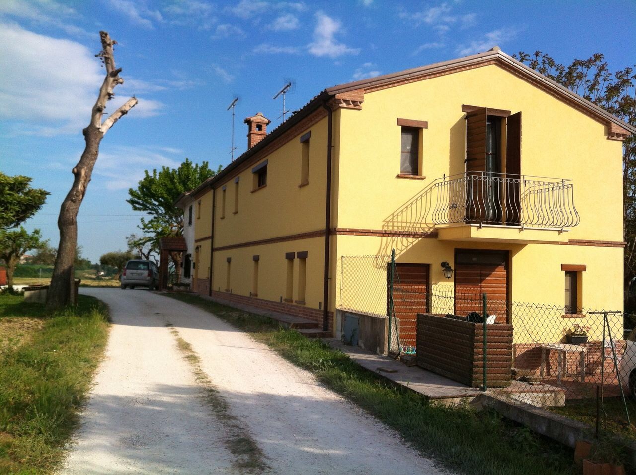 In a small village in The Marche, in a beautiful and quiet natural setting, house rebuilt in 2009 with rustic finishes, in excellent condition, 700 meters of all amenities, 4 km from the sandy beach of Adriatic sea, 8 km from delicious and vibrant historic center of Fano, 50 km from amusement parks in Rimini, 40 km from Ancona airport and 50 km from rinascimental town of Urbino. 220 sqm on 2 floors, 6 rooms (2 single, 4 double of which 2 with en-suite bathroom), 4 baths at all, fireplace, 5000 square meters of garden with a shed, well, automatic gate, fence, oven, 20 olive trees, orchard. solar panels, baseboard heating. energy Class D. `The house is divided into 2 apartments, nowadays communicating. Ideal as bed & breakfast, for parents and children, for a large family or friens group.