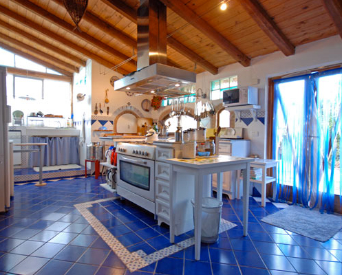 bathrooms are tiled with Vietri ceramics.