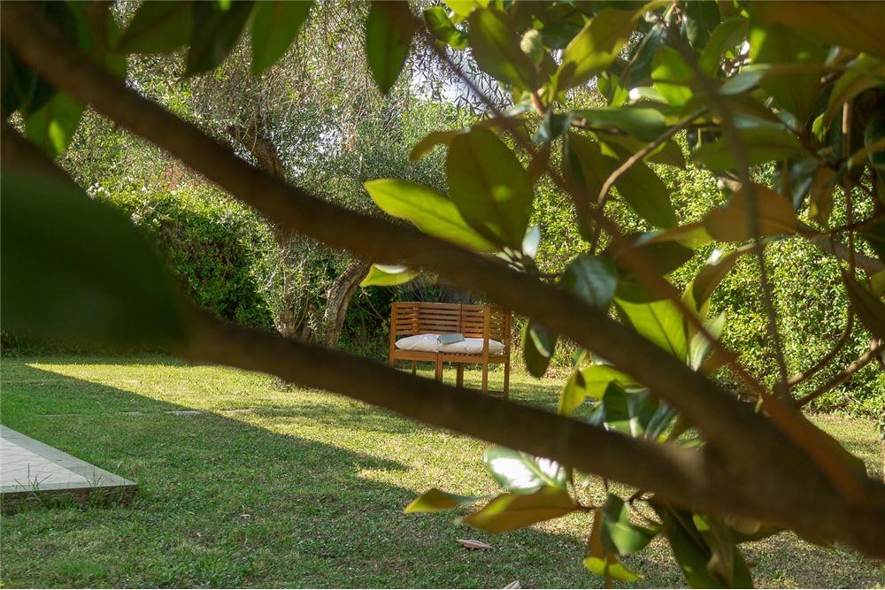 The paved outdoor courtyard is surrounded by a large garden of 1000 square meters.