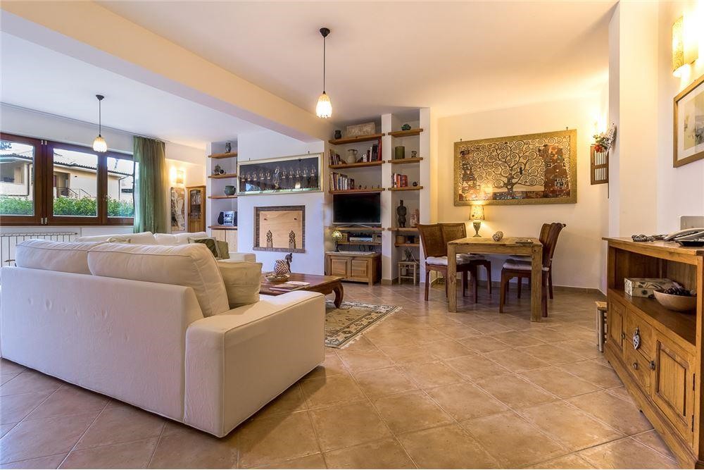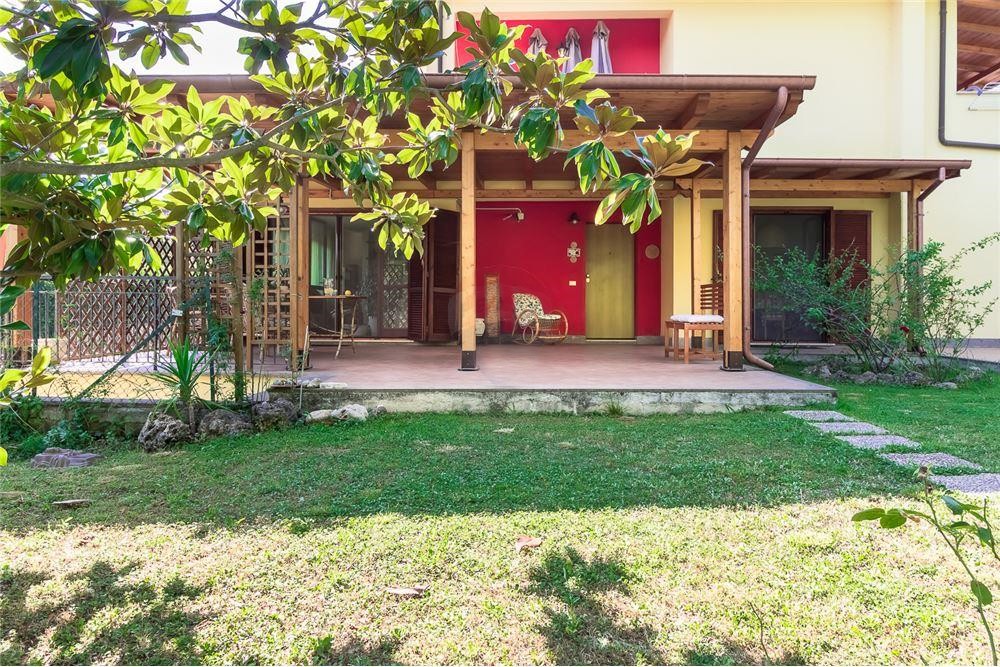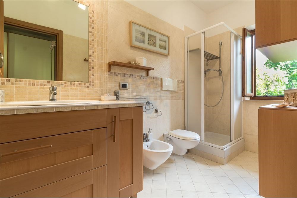 In the intermediate floor there is a large porch in fine wood on a large panoramic terrace. Inside a large living room with windows of six meters and large french window overlooking the porch, with a particular fireplace, dining room and kitchen, both with french doors leading to the paved area of the garden, hallway, bathroom with shower.