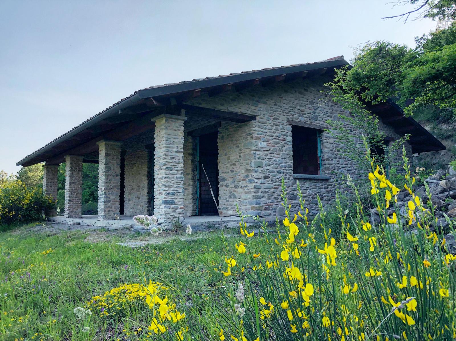 by greenery. Entirely built with river stones and