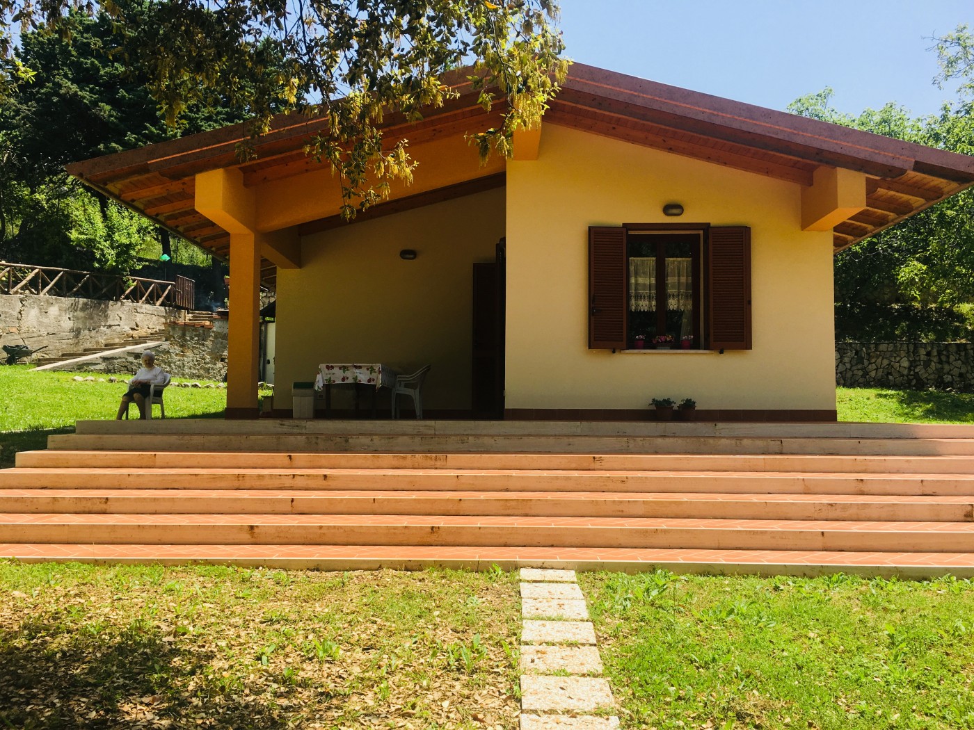 Sale of a wooded court of 2115 m2, with a built of 118 m2, situated in the green of the Lepini Mountains (Tirinzania locality), a short mountain range belonging to the Lazio Antiappennino, located in the heart of the Italian peninsula. The property is currently used for residential purposes and consists of an apartment, a small warehouse and a picnic area.