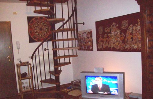 PRIVATE SELLING, NO AGENCY For sale – wonderful beamed mini flat. Year 2000 located in Dosson: a calm charming village between Venice and Treviso. - SPECIAL NEW Price: 140.000 € - Surface: 65 sqm - Floor: 1st and last floor: dining room and kitchen corner, store room, bathroom; upstairs: mansard bedroom (30sqm) with 2 terraces 1 owned covered parking place + exterior private parking place + basement Air-conditioning arrangement all around Alarm device installed Heating: independent 1 Bathroom with bath Furniture: to be defined Condition: perfect, just painted no garden or lift fees Main characteristics: good structural condition Various: • 5 minutes from Treviso downtown, 30 minutes from Venice • Bakery, stationedry shop and pizzeria 2 minutes walk • beams • finish quality • terraces • calm charming village