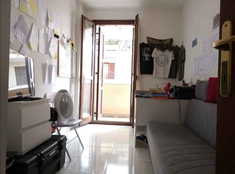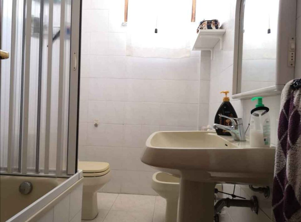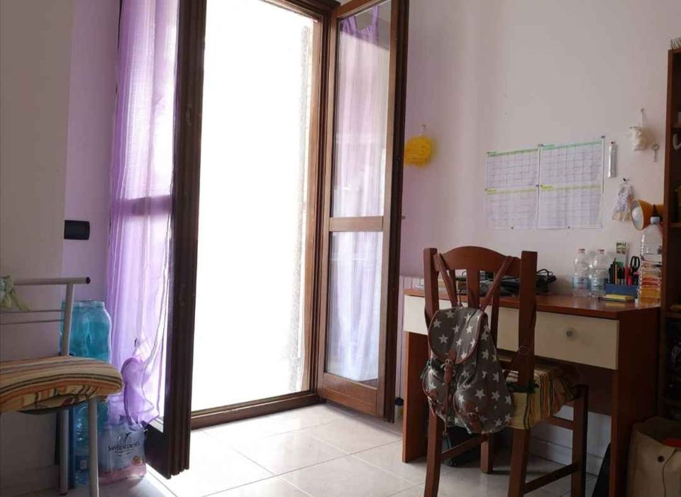 The property entrance leads directly into the reception room flanked by the kitchen. A small bedroom and the main bedroom follow. All the rooms overlook a single terrace, where there is also a laundry corner. The bathroom has a window and a bathtub.