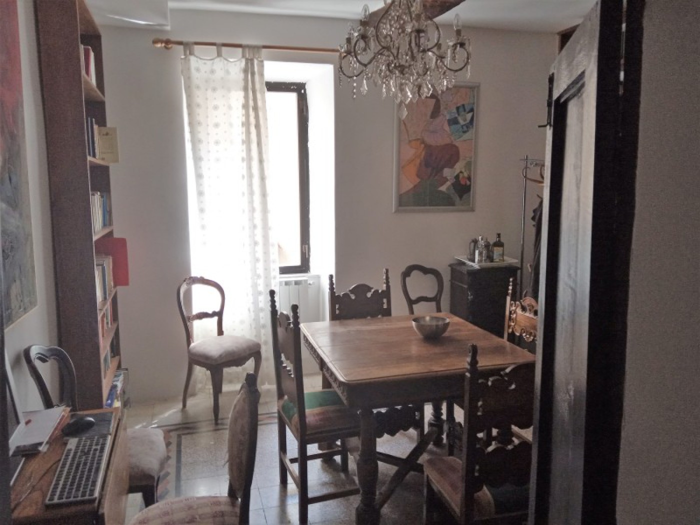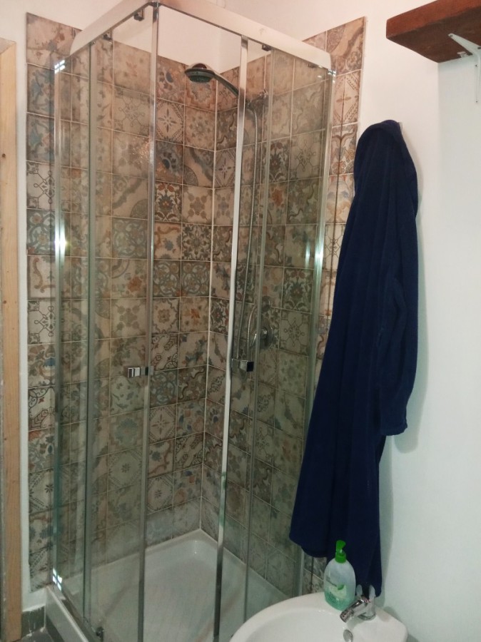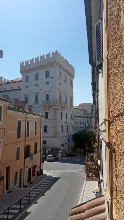 View of the castle from the balcony overlooking the main street. The building is about 120 square meters, including a cellar and spread over 3 floors connected by 2 internal staircases. Street level: living room / Hobby room with bathroom and closet and wood stove; Ground floor / first floor (from the north side entrance is a mezzanine floor, while from the South entrance is a first floor): Entrance, Kitchen with fireplace, bedroom, bathroom with shower, a dining room, small living room with closet and balcony with view of the Castle.
